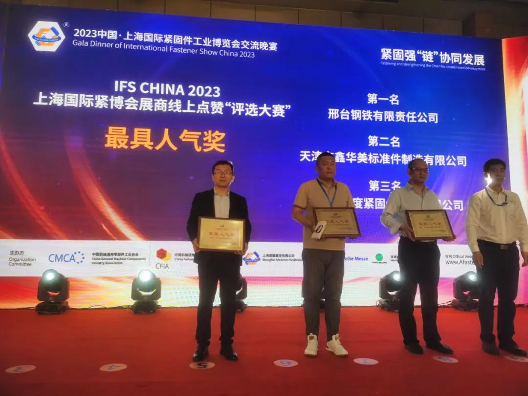 5月22日獲悉,在2023中國上海國際緊固件工業(yè)博覽會上,邢臺鋼鐵有限責(zé)任公司榮獲IFS CHINA 2023 上海國際緊博會展商線上點(diǎn)贊“評選大賽”第一名,獲得“最具人氣獎”獎項(xiàng),并被授予獎杯及證書。