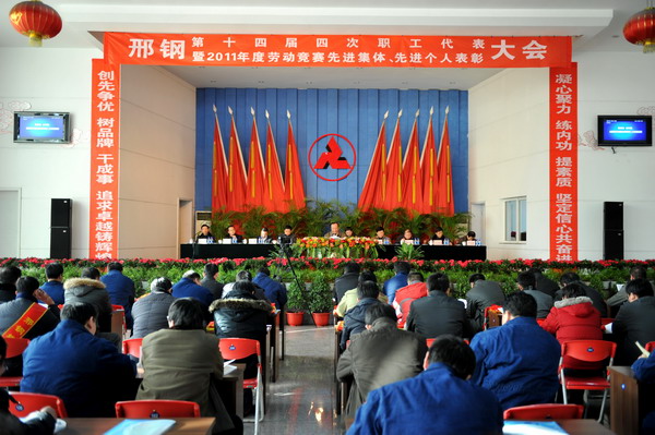 公司常務(wù)副總經(jīng)理張永藏代表公司向大會作了題為《堅定信心,追求卓越,向國際領(lǐng)先的精品線材和深加工企業(yè)集團邁進》的工作報告。報告對2011年公司的生產(chǎn)經(jīng)營情況進行了總結(jié)回顧,總結(jié)指出了2011年的主要工作特點,一是穩(wěn)定生產(chǎn)秩序,調(diào)整產(chǎn)品結(jié)構(gòu),企業(yè)順利實現(xiàn)由普鋼向特鋼的戰(zhàn)略性轉(zhuǎn)變;二是有效實施項目策劃,全力推進達產(chǎn)達效,結(jié)構(gòu)調(diào)整硬件目標(biāo)基本實現(xiàn);三是圍繞市場需求,以不銹鋼為重點開發(fā)新產(chǎn)品,精品鋼市場占有率穩(wěn)步上升;四是深入實施卓越績效管理模式,強化全面預(yù)算管理,機構(gòu)設(shè)置更加精干、高效;五是推進懲防體系建設(shè),關(guān)注員工利益,連獲社會責(zé)任榮譽。報告也對2011年工作中存在的問題和不足作了深入的剖析。針對2012年的生產(chǎn)經(jīng)營形勢,報告提出了2012年生產(chǎn)經(jīng)營工作的總體指導(dǎo)思想是“認(rèn)真貫徹中央、省經(jīng)濟工作會議精神,堅定信心,控制過程,以客戶為中心,以產(chǎn)品質(zhì)量穩(wěn)定提高為抓手,強力推進卓越績效管理模式,打造精品鋼、不銹鋼品牌,加快延伸產(chǎn)業(yè)發(fā)展,向國際領(lǐng)先的精品線材和深加工企業(yè)集團邁進。”同時,還明確了2012年生產(chǎn)經(jīng)營目標(biāo)。關(guān)于2012年的重點工作,結(jié)合公司《2012年年度運營計劃》,報告突出強調(diào)要做好五個方面的工作。一是堅定信心,追求卓越,不斷提升管理效率;二是控制過程,穩(wěn)定產(chǎn)品質(zhì)量,切實發(fā)揮結(jié)構(gòu)調(diào)整優(yōu)勢;三是解放思想,降本增效,確保盈利目標(biāo)實現(xiàn);四是創(chuàng)新營銷模式,建立產(chǎn)銷研聯(lián)動機制,加快延伸產(chǎn)業(yè)發(fā)展;五是創(chuàng)先爭優(yōu),弘揚正氣,維護員工權(quán)益,打造和諧邢鋼。面對挑戰(zhàn)和希望并存的2012年,報告要求要堅定信心,眾志成城,堅定不移地走好精品之路,共同向國際領(lǐng)先的精品線材和深加工企業(yè)集團邁進!