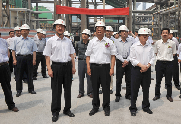 在新建污水處理項(xiàng)目分會(huì)場(chǎng):省、市領(lǐng)導(dǎo)及嘉賓認(rèn)真聽取了動(dòng)力廠員工對(duì)污水處理工藝介紹,并興致勃勃地參觀了污水處理調(diào)節(jié)池、高密度沉淀池、v型濾池、深度處理間和污水處理中控室。