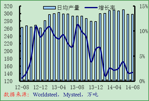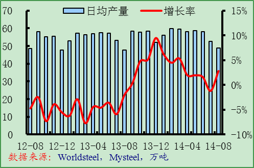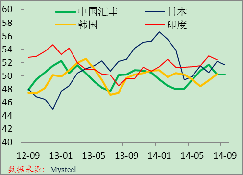 8月份亞洲粗鋼日均產(chǎn)量達(dá)到298.4噸,環(huán)比增長(zhǎng)0.1%,同比增長(zhǎng)1.7%,韓國和印度產(chǎn)量增長(zhǎng)明顯。根據(jù)中鋼協(xié)的統(tǒng)計(jì),9月份中國重點(diǎn)鋼企粗鋼日均產(chǎn)量環(huán)比小幅下降,而Mysteel調(diào)查的9月份全國鋼鐵PMI產(chǎn)出指數(shù)也有所下降。預(yù)計(jì)9月份亞洲粗鋼日均產(chǎn)量將環(huán)比下降。