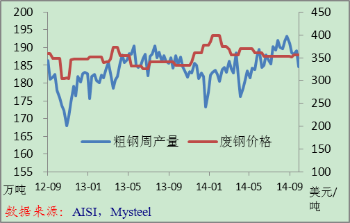 美國粗鋼產(chǎn)量和1號(hào)重廢價(jià)格 美國鋼材進(jìn)口量
