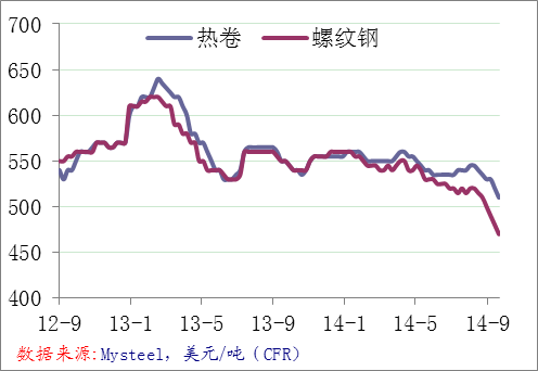 10月份亞洲市場(chǎng)將在底部盤整運(yùn)行。從需求角度看,主要國家經(jīng)濟(jì)增長(zhǎng)速度均放緩,10月份市場(chǎng)需求不容樂觀。供應(yīng)方面,目前中國鋼廠還有一定利潤(rùn),減產(chǎn)的積極性也不高,10月份產(chǎn)量仍將保持高位。從成本角度看,雖然鐵礦石和焦煤價(jià)格已經(jīng)基本觸底,但反彈時(shí)機(jī)并未到來。因此,整體上判斷,10月份亞洲市場(chǎng)將在底部盤整運(yùn)行。