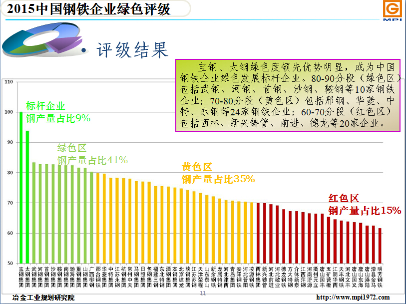 日前,冶金工業(yè)規(guī)劃研究院、環(huán)境保護部環(huán)境工程評估中心聯(lián)合公布2015年中國鋼鐵企業(yè)綠色評級結(jié)果,邢臺鋼鐵有限責(zé)任公司位列第13名。