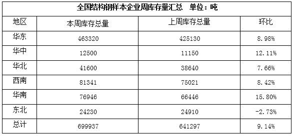 5、華北市場:節(jié)日期間華北市場結(jié)構(gòu)鋼價格大體穩(wěn)定,成交差,現(xiàn)45#碳結(jié)鋼鋼廠直發(fā)主流報價:山東魯麗3870-3900元/噸、榮鋼4030元/噸、宣鋼4050元/噸、凌鋼4060-4080元/噸。據(jù)市場方面消息,節(jié)日期間華北地區(qū)結(jié)構(gòu)鋼市場銷貨不佳,庫存大幅積壓,價格反彈壓力較大,節(jié)后下游需求變化仍有待觀察,商家情緒偏空。據(jù)統(tǒng)計,節(jié)中華北地區(qū)結(jié)構(gòu)鋼市場標本企業(yè)庫存累計2.32萬噸,較節(jié)前增加0.3萬噸,環(huán)比增加14.85%。
