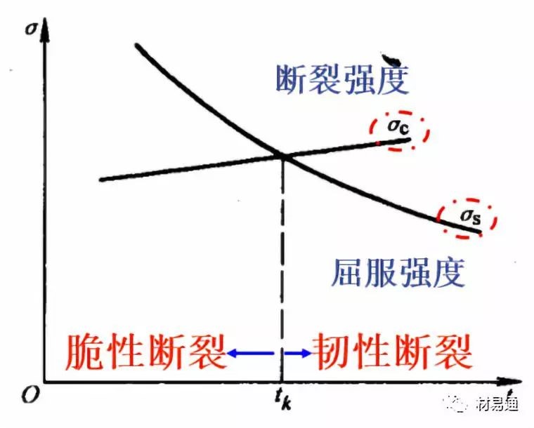低溫脆性是材料屈服強度隨著溫度的降低急劇增加的結(jié)果;見右圖,屈服點隨著溫度的下降而升高,但材料的斷裂強度隨著溫度的變化很小;兩線交點對應(yīng)的溫度就是tk。