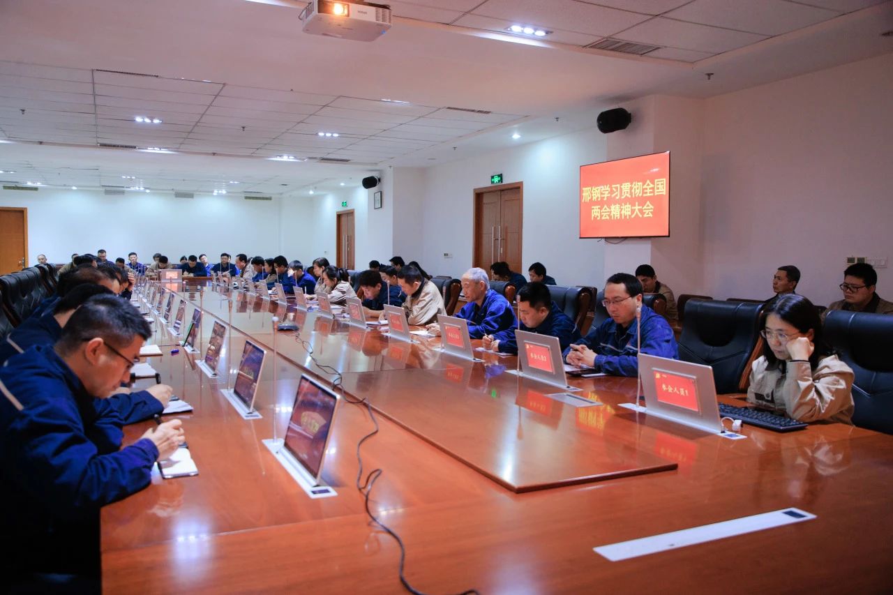 3月18日,邢臺鋼鐵有限責任公司組織召開專題學習會,專題傳達全國兩會精神。公司高管、中層管理人員和副主任師以上人員,分別在公司207會議室和威縣項目地參加會議。