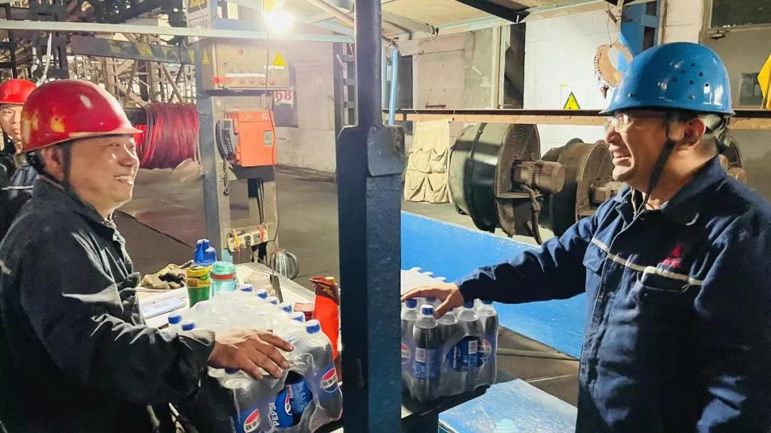 6月10日上午,公司副總經(jīng)理侯浩然、副廠長王華一行來到煉鐵廠高爐爐前東場和西場、輔助噴煤崗位、二燒混合機(jī)檢修現(xiàn)場、二燒看火、原料131等崗位,帶來西瓜等飲品,代表公司和廠部看望奮戰(zhàn)在一線辛勤作業(yè)的員工們。