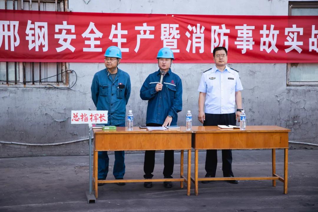 上午8點55分,邢鋼副總經(jīng)理李紅超宣布應(yīng)急演練正式開始。9時,中控室氣體檢測報警設(shè)施顯示5#探頭報警,粗苯工檢查發(fā)現(xiàn)粗苯罐放空閥外側(cè)法門里側(cè)法蘭開裂,發(fā)生粗苯泄漏,隨即報告值班廠長,焦化廠粗苯儲罐事故專項應(yīng)急預(yù)案響應(yīng)啟動。警報一響,應(yīng)急指揮部迅速成立,現(xiàn)場所有人員在指揮長的指導(dǎo)下,按照應(yīng)急預(yù)案有序開展了處置、救援等應(yīng)急程序。線材廠、煉鋼廠、煉鐵廠、質(zhì)控部等單位組織人員到現(xiàn)場觀摩學(xué)習(xí)。