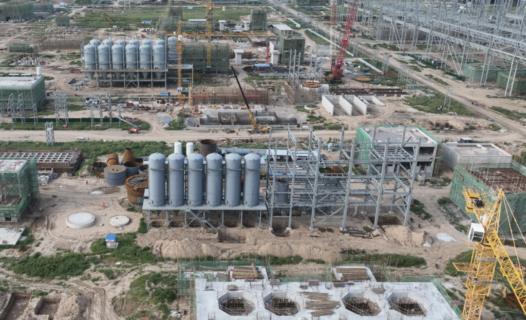 在大盤卷車間西側(cè)的不遠(yuǎn)處,就是新邢鋼的心臟地帶——熔融還原爐!它可是新邢鋼的超級大明星,一路上我倆嘰嘰喳喳地探討過好多問題,全部都是關(guān)于它的建設(shè)情況。目前它還沒有落好,但我們有這樣的耐心,好事兒多磨嘛!看還原爐旁邊那些架起的鋼結(jié)構(gòu),也如同衛(wèi)士一般站在那里,我相信它們也和你一樣,熱切期待還原爐像啟明星一樣冉冉升起,照亮整個(gè)新邢鋼,引領(lǐng)行業(yè)未來!